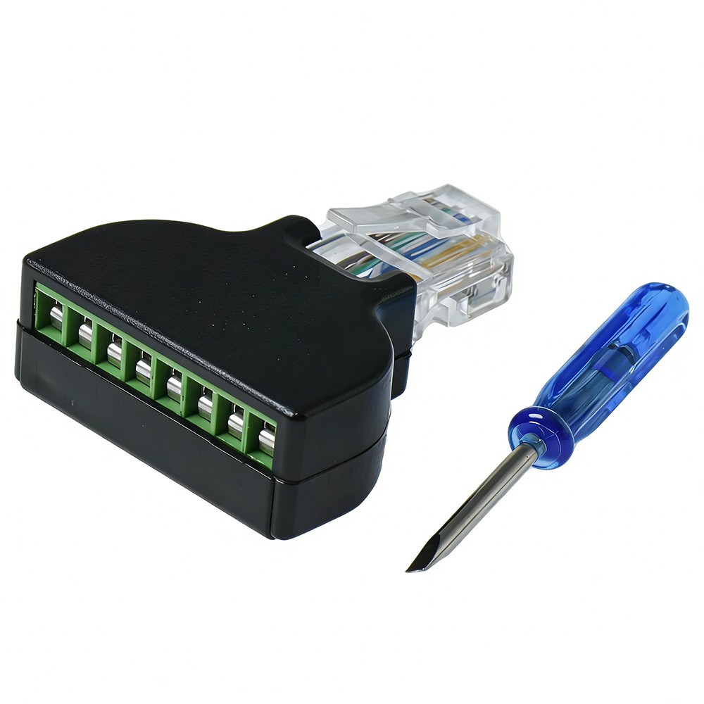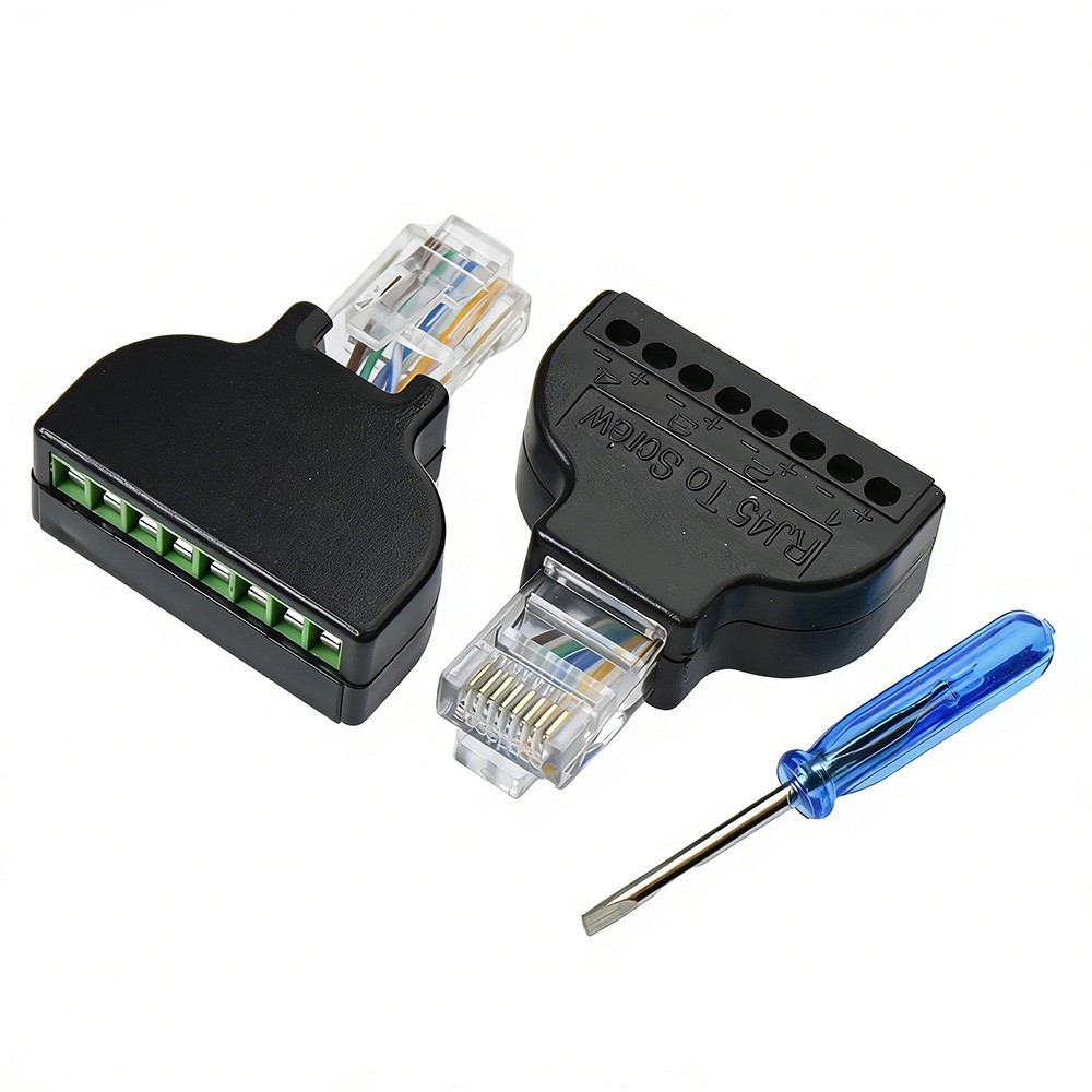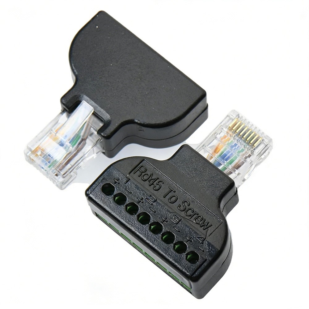 Male RJ45 to 8 pin screw terminals Use with baluns that have RJ 45 video ports Compact design and reliable connection