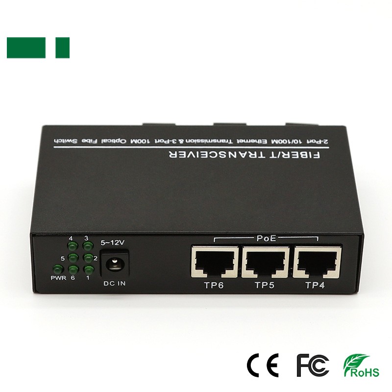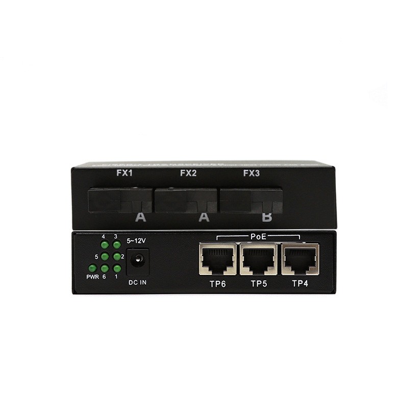 3*100Mbps full-duplex fiber port and 3*100Mbps Ethernet port.