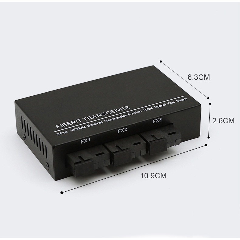 Type: 10/100Mbps Optic Media Converter Power: DC 5V Power Adapter: EU/US Plug Connector A: 3TX/RX SC Port Connector B: 3 RJ45 Port Distance: 20Km