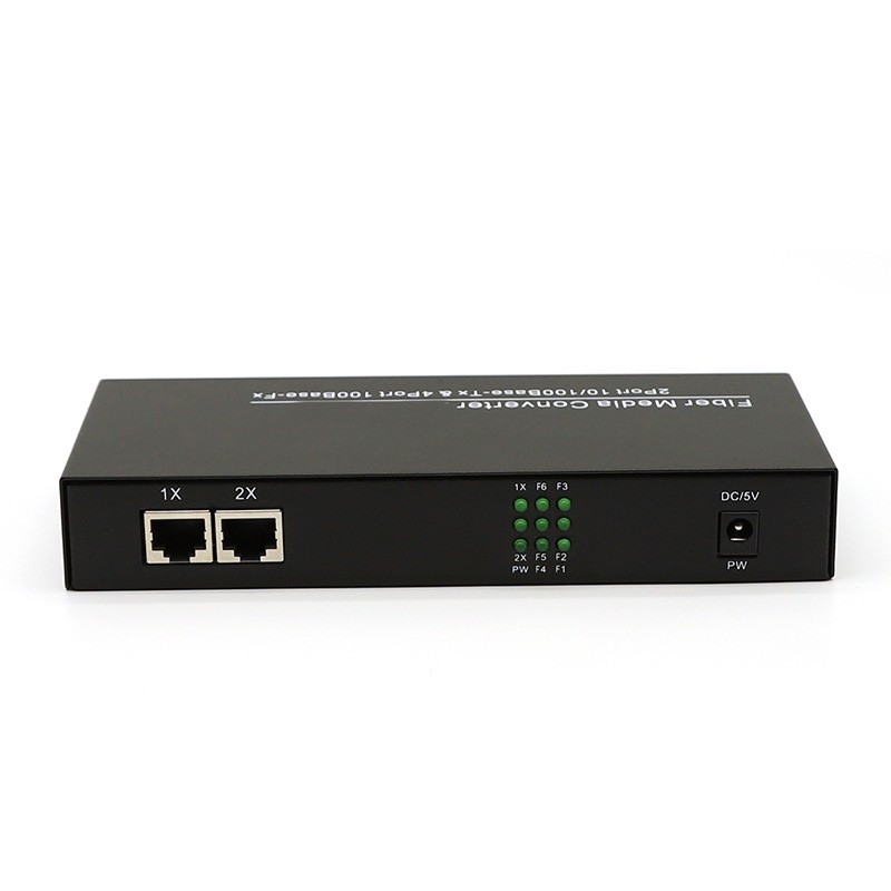 4*100Mbps full-duplex fiber port and 2*100Mbps Ethernet port.