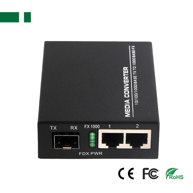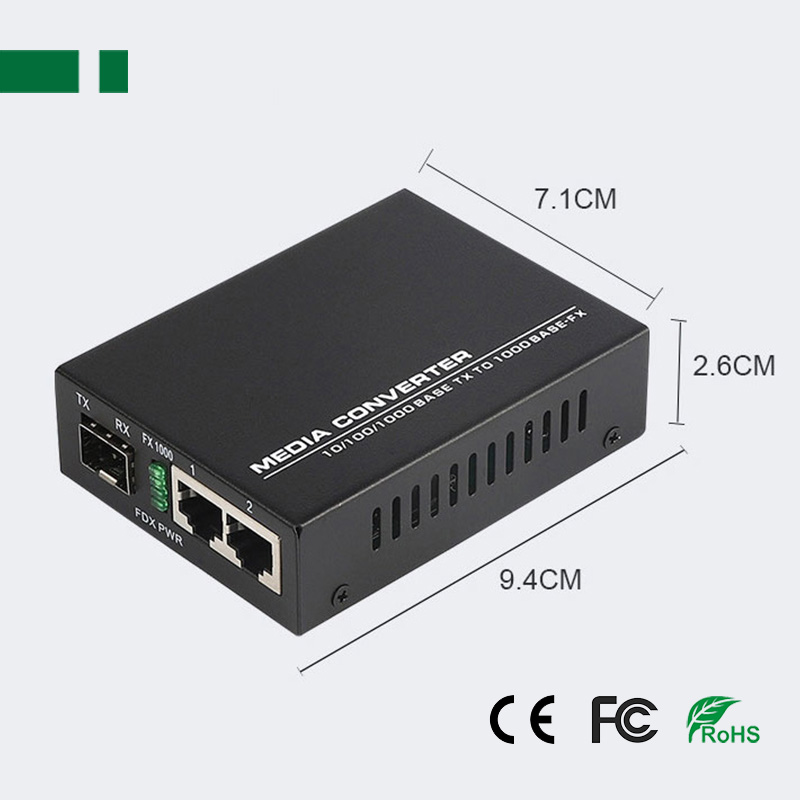 Gigabit 1*SFP Port to 2*Ethernet Port SFP Media Converter;