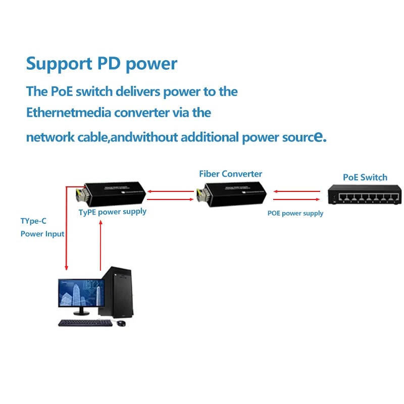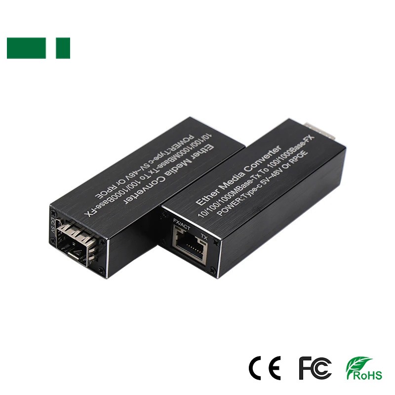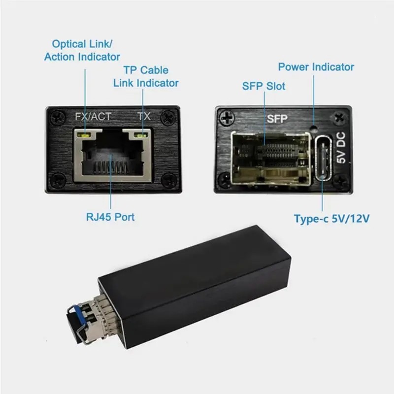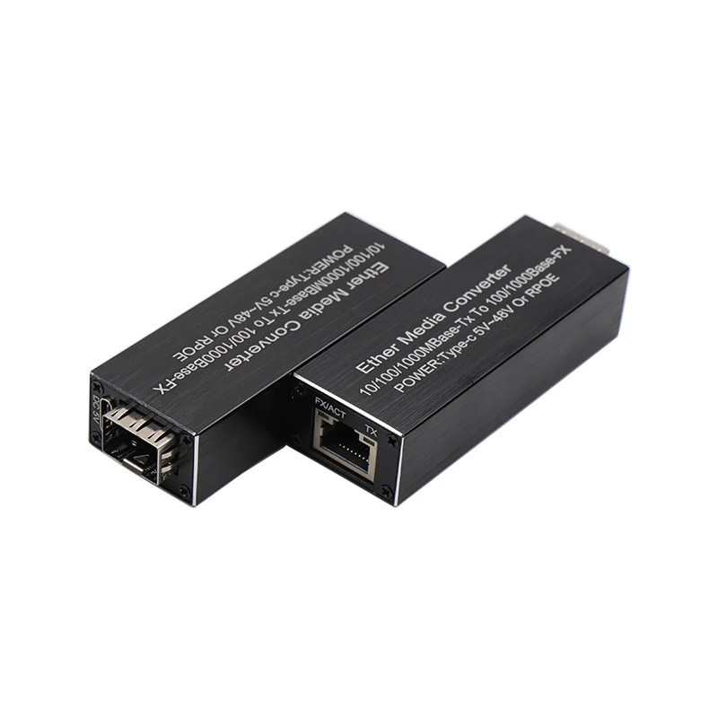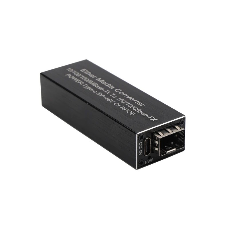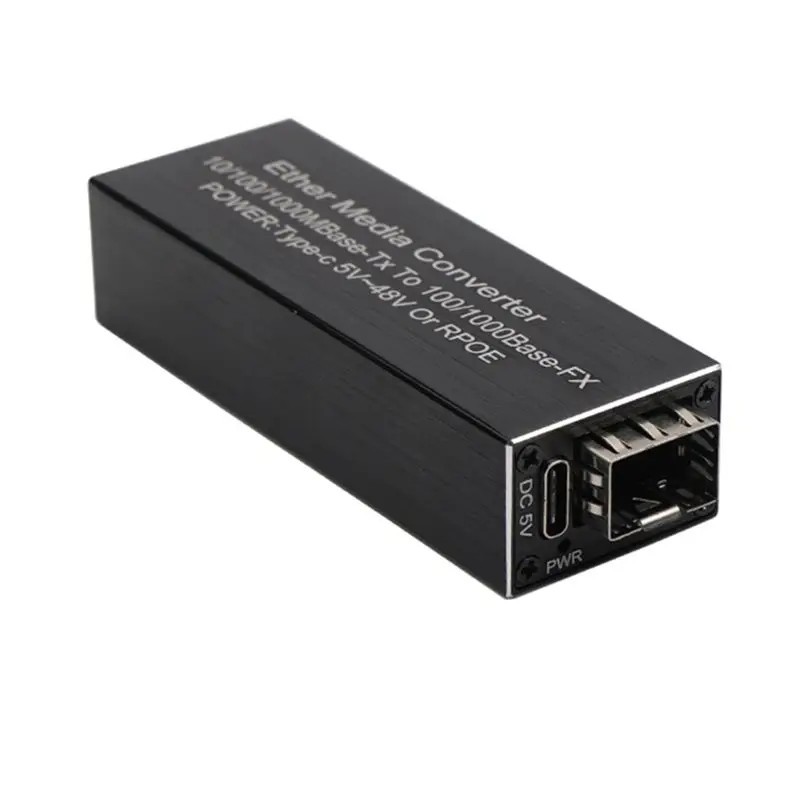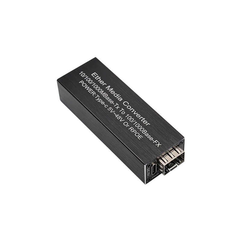 Product Name: 1000Mbp Mini SFP Optic Mdiea Converter Power supply: TYPE-C:5V/12V 1A or POE RJ45 Port Rate: 100/1000Mbps self-adapting Fiber Optic Port Rate: 1.25G Fiber Optic lnterface: SFP Module RJ45 interface: RJ45 Wavelength: 1310/1550nm;1310nm