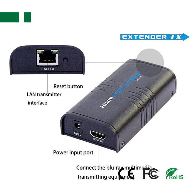 Extends HDMI signal up to 120 meters for 1080p over CAT5e/6 cable
