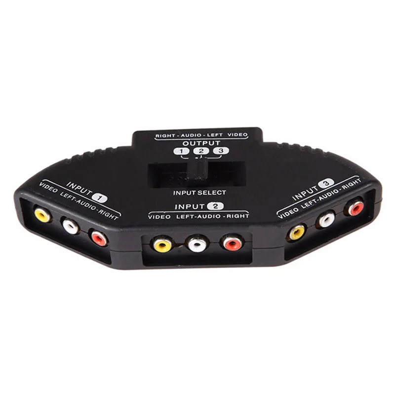 Enable your TV set to be connected with 3 peripheral devices, such as Xbox, DVD player, PS3 etc. Compatible with all devices that utilize RCA inputs such as your TV. No external power needed, easy to use. No need to unplug wires when switching between game consoles, DVD players, digital camcorders when using the 3 to 1 multi-switch 3 RCA (Female) to 1 RCA (Female) port 3 way Audio/video switch/Splitter.