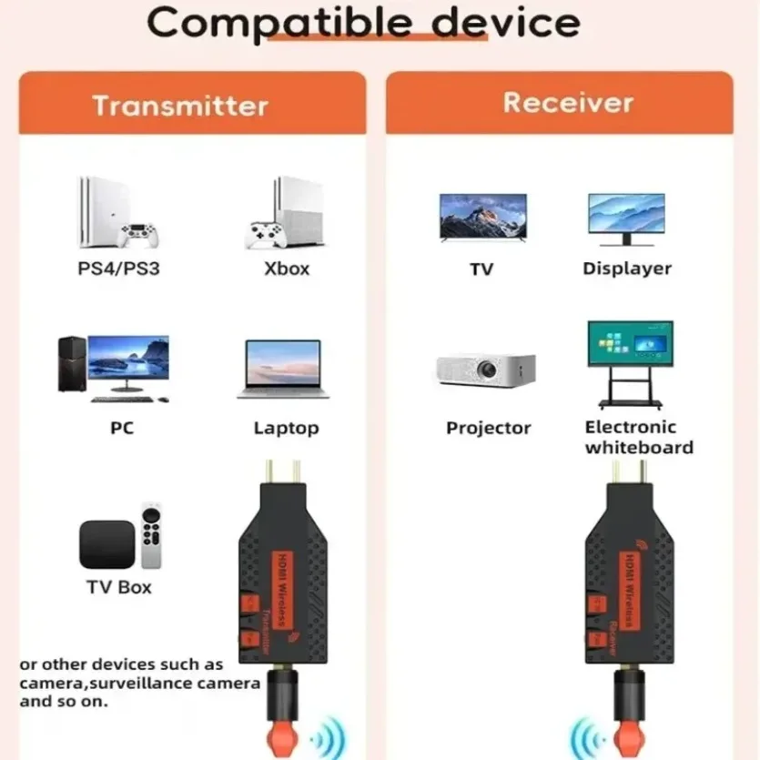 1. HDMI video and audio transmission via built-in wireless transmission protocol,no need wifi or internet
