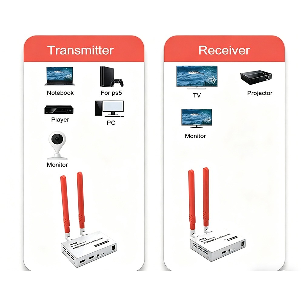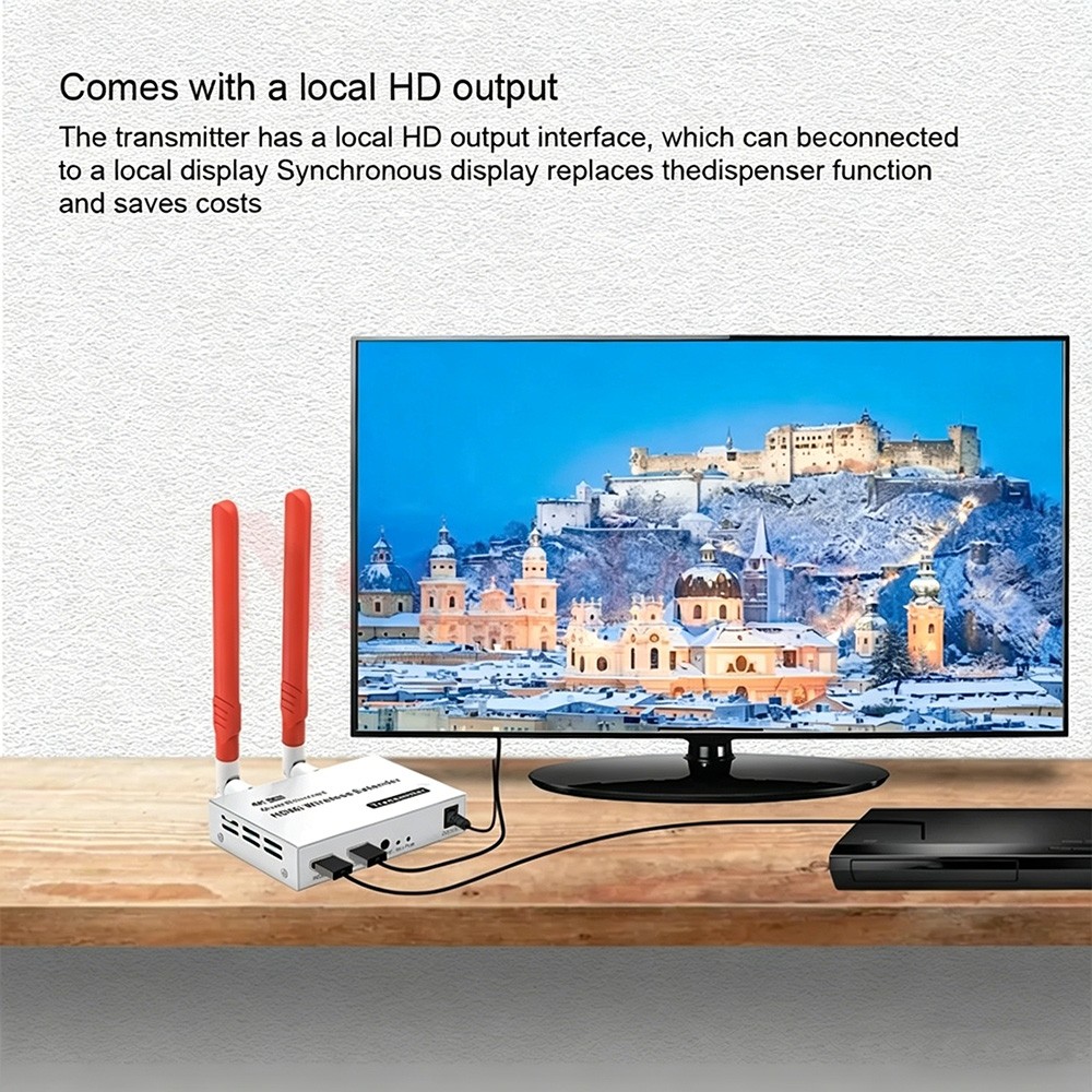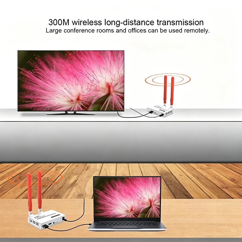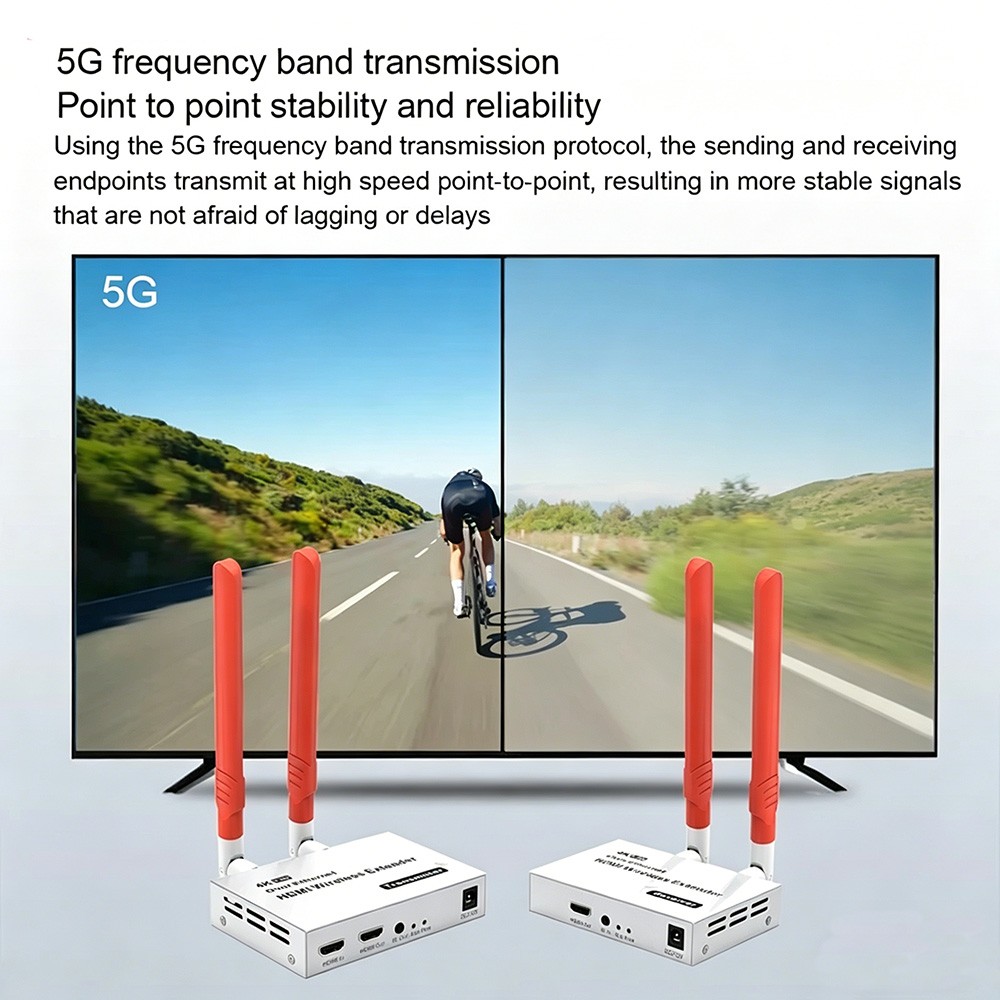 4K HDMI Wireless Extender 300Meters Encoding format: H.264 WIFI:2.4G+5G HDMI protocol: HDMI 1.4 Maximum supported resolution: 4K@30Hz