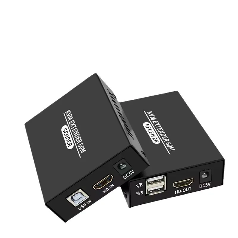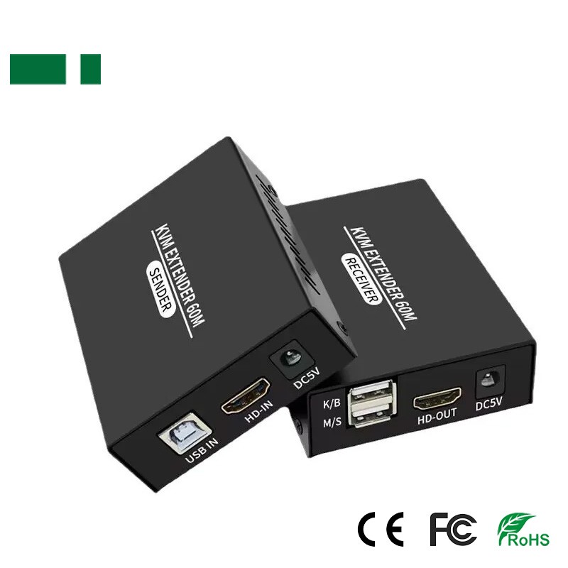 The KVM Extender uses single cat5e or cat6(recommended) cables instead of HDMI Cable to transmit high definition signal up to 60 meters, cutting down the cost.