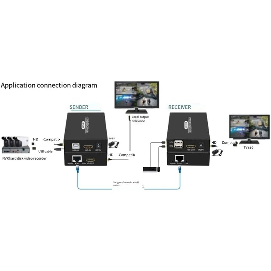 60M KVM IP Extender, 1080P, Length of CAT-6/CAT-5E cable between Rx and TX: Up to 60 meters; Both the TX and RX support 3.5MM audio output; Support IR remote control; Support USB mouse and keyboard