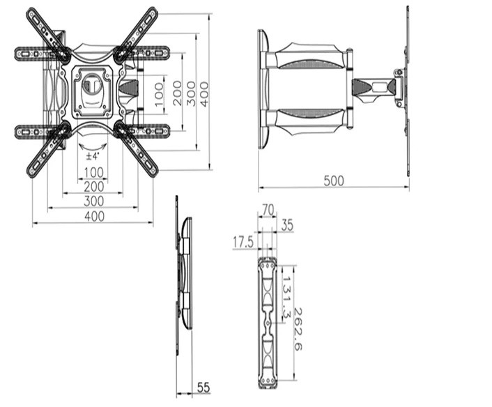 ▪ Our TV bracket fits most 32-55 inch TVs weighing up to 25kgs. Removable extender brackets forms different combinations achieving one stop solution for most medium TVs, compatible faceplate fits VESA 50*50mm-400*400mm