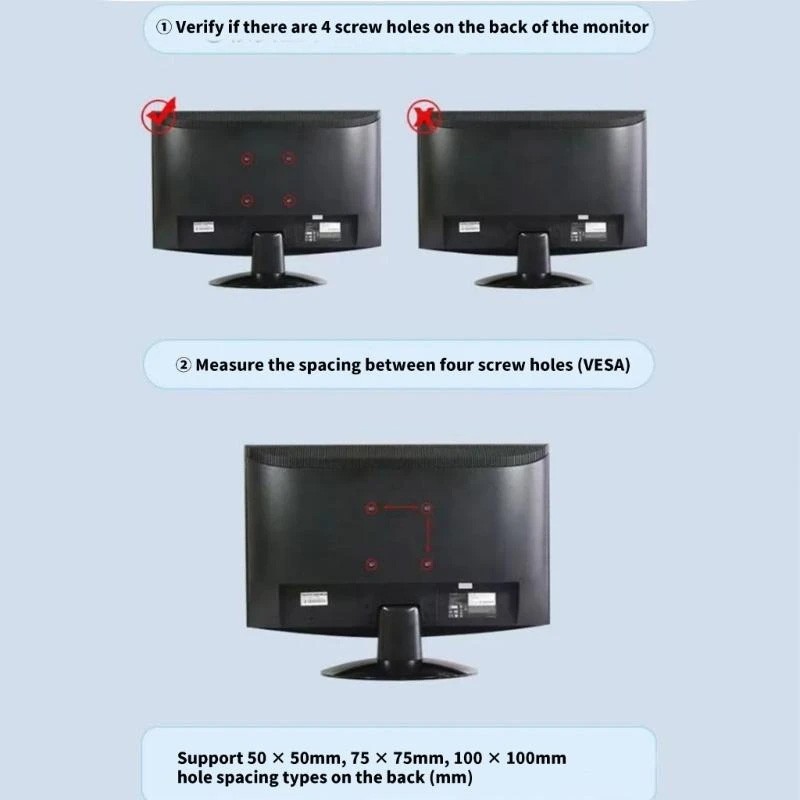 VESA Standard Pitch ---------------------------------------------50*50mm,75*75mm, 100*100mm