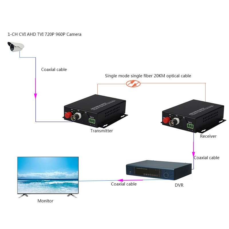 ▪ The Coaxial HD Fiber Converter is designed for long-distance optical fiber transmission HD-CVI/ AHD/ TVI composite video, and adopts self-developed uncompressed digital photoelectric conversion technology. Use fiber-optic point-to-point transmission of megapixel HD video for video transmission without delay and high reliability.