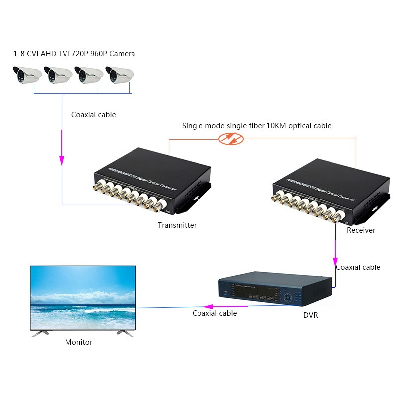 ▪ 8-ch 960P HD-CVI/TVI/AHD Fiber Converter;