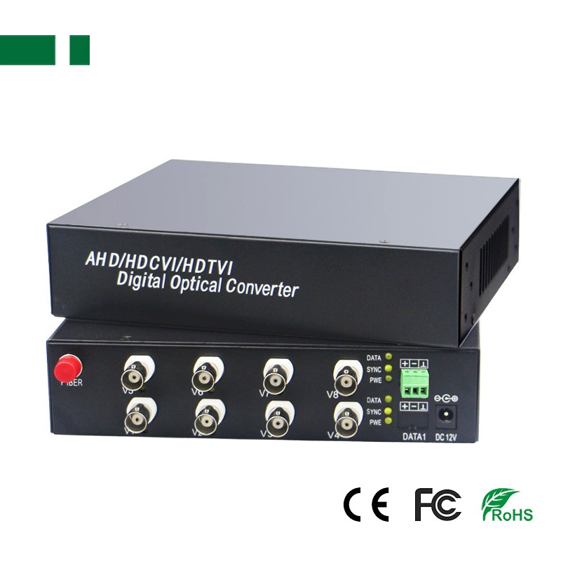 ▪ 8-ch 1080P HD-CVI/TVI/AHD Fiber Converter with RS485;