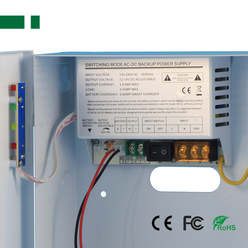 The UPS (Uninterruptible Power Supply) is a power supply control device. It is mainly suitable for applications such as burglar alarms, CCTV cameras, PTZ (Pan-Tilt-Zoom) devices, and Access Control systems.