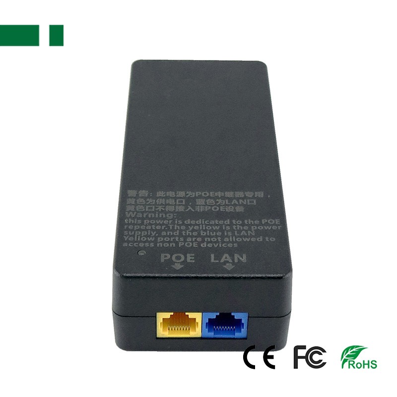 Power adapter for 8pcs PoE repeater Power output: DC70V/ 1.8A/ 126W Power input: AC110V-264V 47-63Hz Pins :1/2“+” 3/6“-” (data), 4/5“+” 7/8“-” (power) Agreement: IEEE802.3at/af