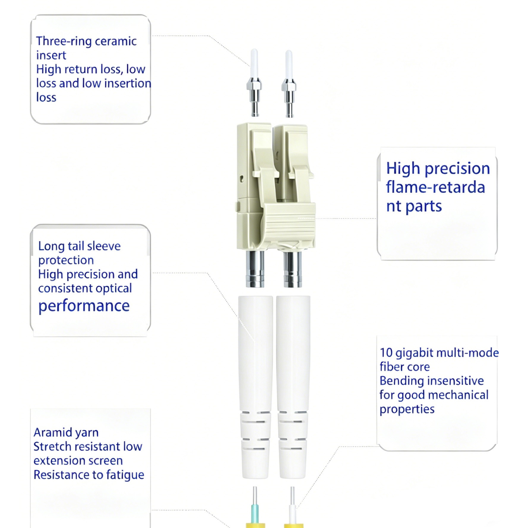 2.0mm PVC,LC-LC-D-OM3 10Gigabit Multimode Dual core Optical Fiber Patch Cord