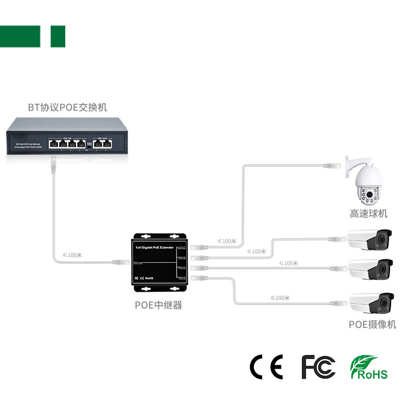 ◇ POE repeater can extend the network signal transmission distance and the POE power supply distance;