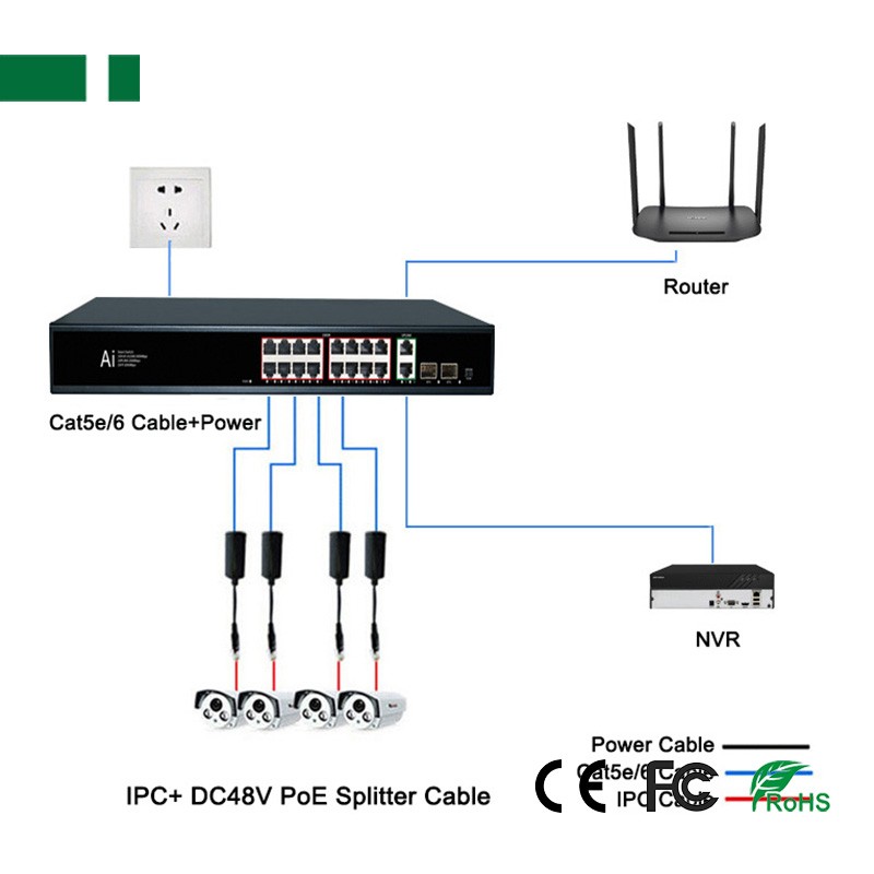 ▪ The POE Ethernet Switch is security surveillance Ethernet switch which aims at Ethernet high definition surveillance and security system. The products fully combines the characteristics of security surveillance, provides fast packet forwarding ability and abundant backplane bandwidth, which ensures clear image and fluent transmission.