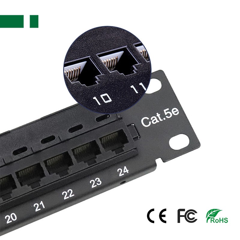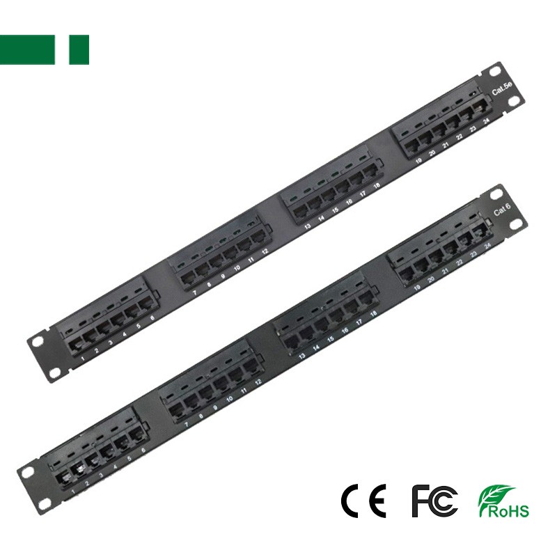 ▪ 1U 24-Port Cat5e Patch Panel for 19 Inch Rack Mount;