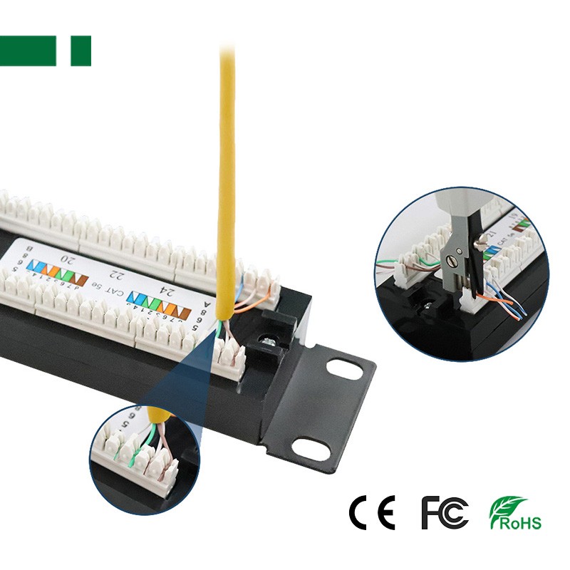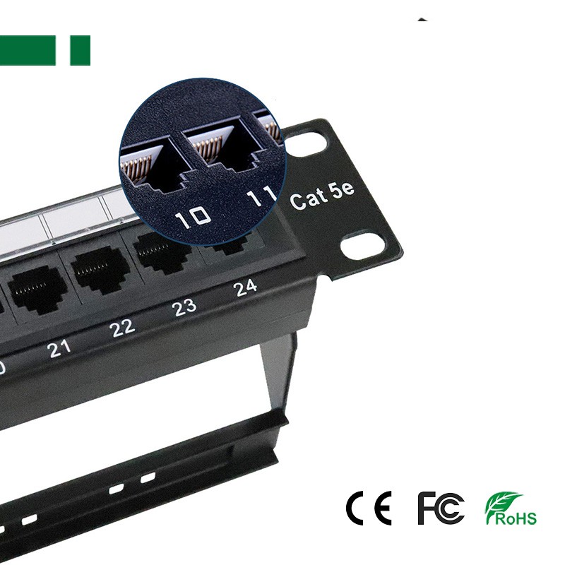 ▪ 1U 24-Port Cat5E Patch Panel for 19 Inch Rack Mount;
