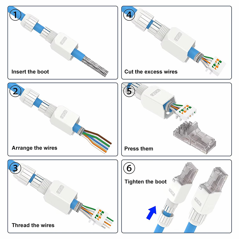 【Reusable】This RJ45 connector is reusable, if it doesn't work after the first installation, you can disassemble it and try again.