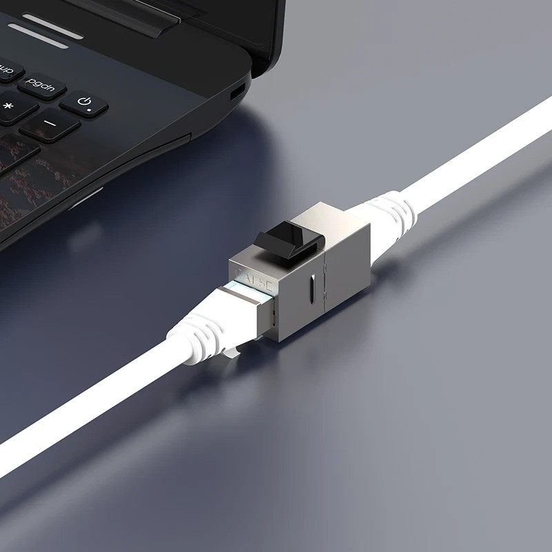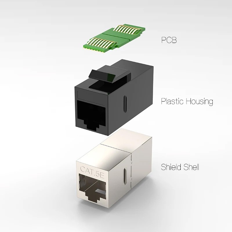 This Shielded RJ45 Coupler features a compact design with straight-through TIA/EIA-T568B pinouts;Connect two Cat5E Ethernet cables seamlessly in tight spaces; Ideal for office use, server setups, and home networks.