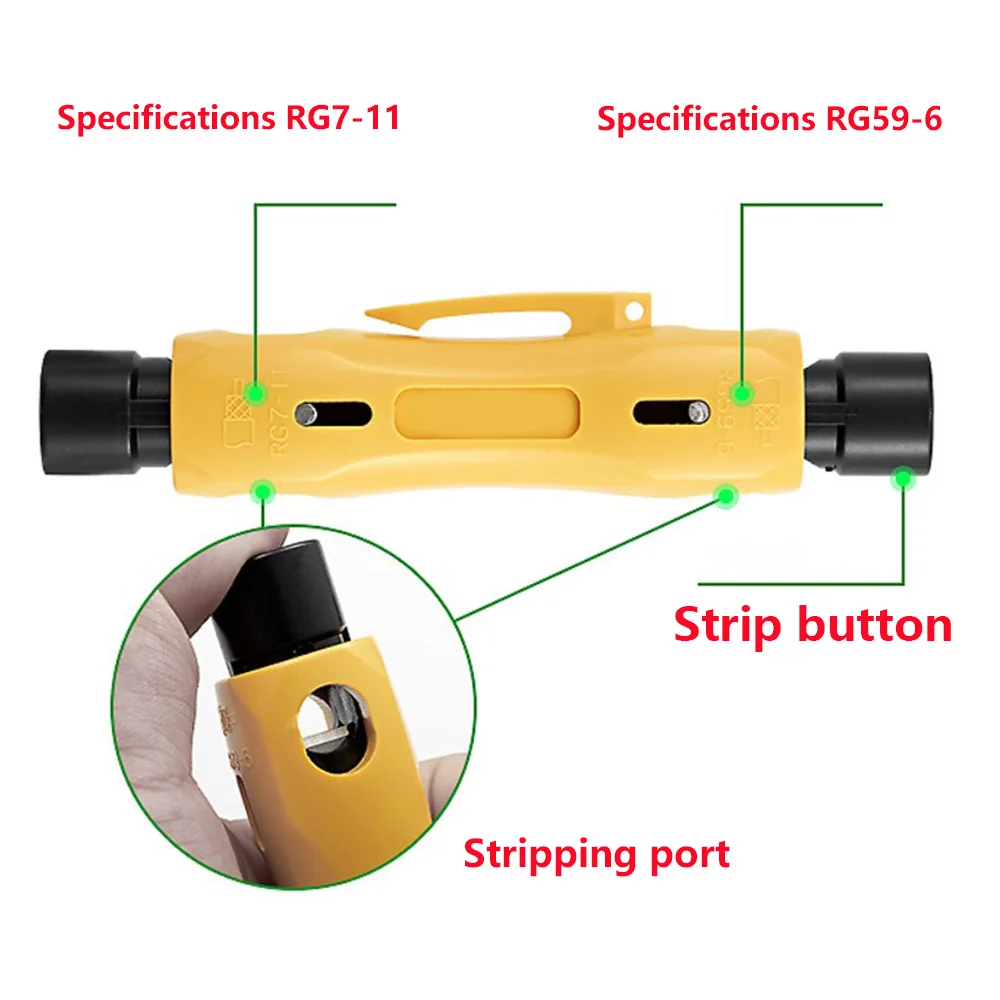 Peeling devices for 10-20AWG specification wires, RG6 RG59 coaxial audio and video data cables and 0.5-6.0mm2 wiring. Ideal for stripping cable sheathing of different insulation thicknesses, suitable for UTP/STP cables.