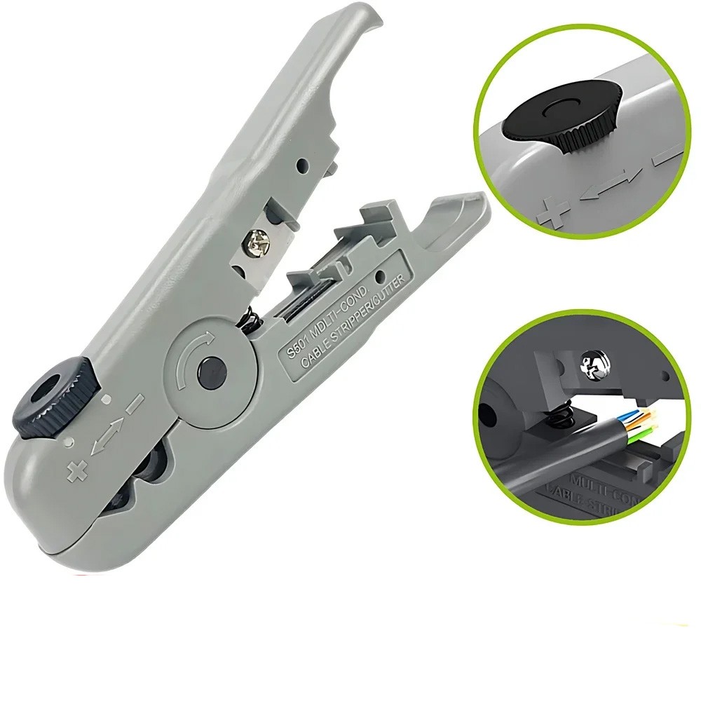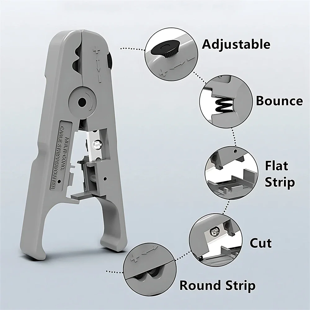 3. Equipped with Coaxial Cable stripper, round cable stripper, cutter and flat cable stripper.