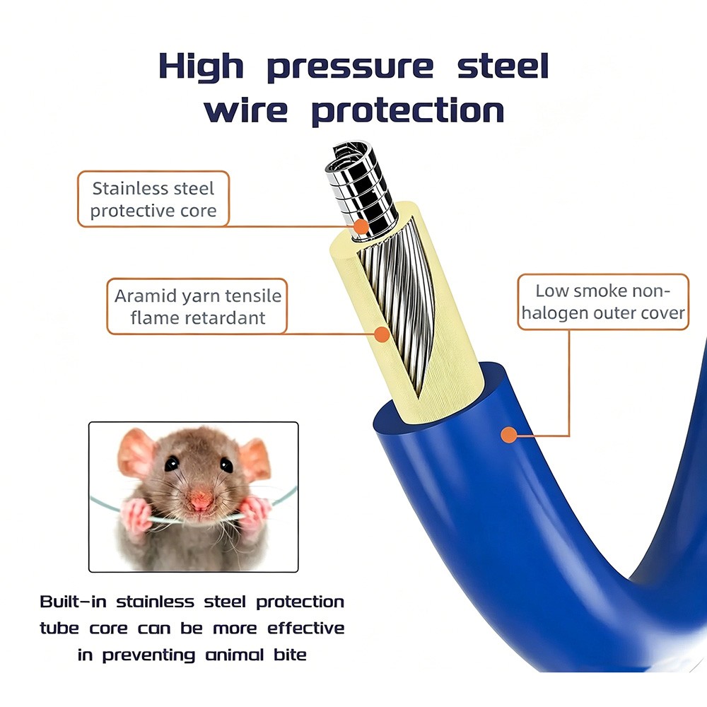 3MM, G652D, Armored Optical Fiber Patch Cord, Single-Mode, Single Core, Blue Color