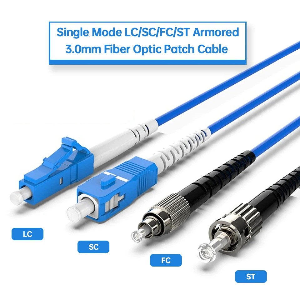 3MM, G652D, Armored Optical Fiber Patch Cord, Single-Mode, Single Core, Blue Color