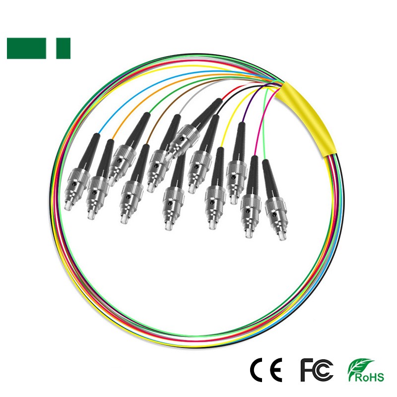 ST/UPC 0.9mm Optical Fiber Pigtail Cable, Single Mode, Twelve Cores, 1.5M