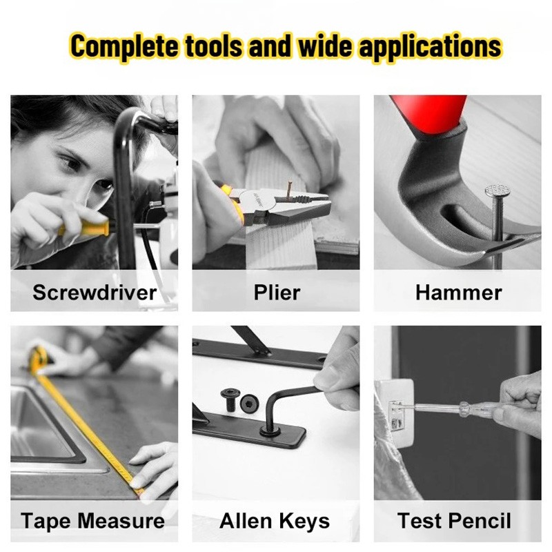 The 13-piece set includes a variety of tools such as pliers, screwdrivers, wrenches, and more, designed for a wide range of household repairs and improvements. Crafted from high-grade carbon steel, these tools are built to last and withstand the rigors of regular use. The portable toolbox case is not only a practical storage solution but also a convenient way to transport your tools, making it perfect for both home and office use.