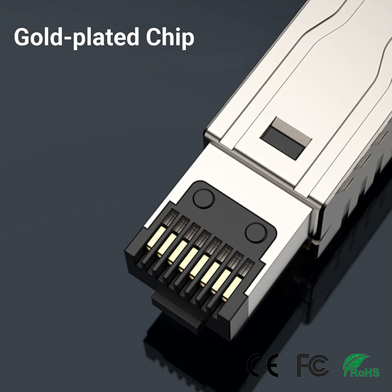 【50μm gold-plated contacts】Anti-oxidation, corrosion-resistant, and enhanced conductivity for ultra-fast 10Gbps network transmission.